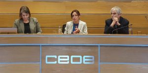 Alicia Chanca y Antonio González, acompañados de Luz Garrido, en la presentación de la Guía en la sede de CEOE. - Alicia: Cualquier aportación en materia de prevención, de promoción de espacios saludables en los entornos laborales que nos arrojen luz y un modelo a seguir para incrementar el bienestar de las personas es bienvenida. Esta guía ofrece un marco y a diseñar políticas más humanas y sostenibles. Además, facilita la toma de decisiones basadas en datos y profundiza en la comprensión de los momentos críticos del ciclo laboral, sin perder de vista los momentos vitales por los que circulamos las personas.